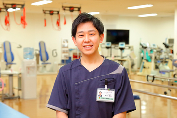 作業療法士として患者様の日常生活における様々な動作のリハビリを行っています。食事をすることやトイレにいくことなど、支障なく快適に暮らせるようあらゆる作業療法を用いてサポートします。例えば、患者様の趣味に関することを取り入れ、お手玉やボールを使ったりすることも。時にはご家族と相談しながらリハビリの方法を決めていくこともあります。現在私は一日に10人前後の外来患者様のリハビリを担当。リハビリスタッフとの情報共有・収集を行いながらリハビリ計画を立てていきます。この仕事の一番のやりがいは、患者様が退院し自宅に帰られた時です。その方の人生を助けたという達成感とともに、本当によかったなと心からそう思います。