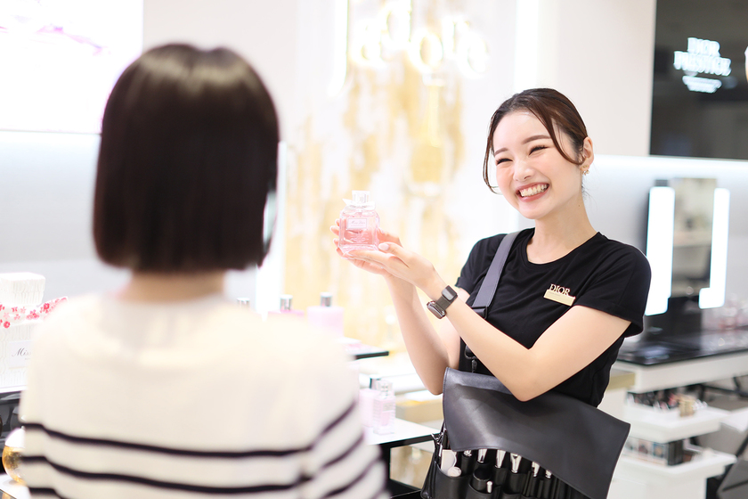 学生時代からずっと憧れ、「ここしかない!」と決めて就職活動を頑張ったDiorで、美容部員(ビューティー コンサルタント)として働いています。コスメカウンターで、お客様のご相談に乗ったり、オススメの商品をお試しいただいたりしていますが、メイクアップをしてさしあげたお客様から「あなたにやってもらえて良かった、ありがとう」「またあなたにやってもらいたい」と言っていただけると、とても嬉しくなります。また、さらに幅広いご提案ができるよう、先日カラースタイリスト資格も取得しました。もっと上を目指して、頑張ります!