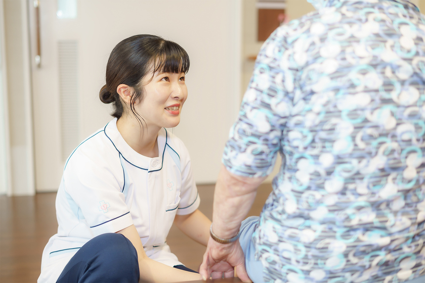 当院では全ての病棟、介護老人保健施設で365日休まずリハビリテーションを行い、より早く従来の生活に戻ることを目指します。そのために、患者様に適した装具を提供できるよう回診を実施。「脳卒中ガイドライン」に基づく「装具を用いた早期歩行訓練」実現に向けて入院早期から介入、「装具手帳」をお渡しし、退院後のサポートに繋げています。達成感を感じるのは、患者様のできなかったことができるようになった時。退院前に、ありがとうと感謝を伝えてくださる方もいてやりがいを感じます。また、よりよい入院生活を送り、かつ早期退院が実現出来るよう、多職種連携を重視し、積極的にコミュニケーションをとるように心がけています。