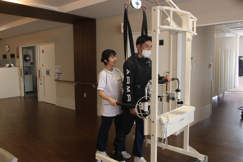 免荷式リフト歩行器使用した歩行訓練の様子です