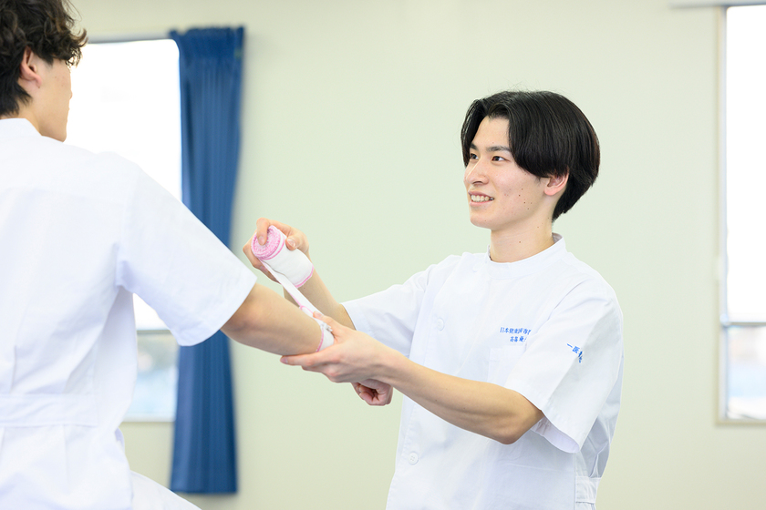 柔道整復師を目指す学びのうち、実技が特に好きです。友人と協力して患者役と施術者役になりながら、固定実技やテーピング技術を楽しく学んでいます。以前から興味があったスポーツと筋肉の学びを通じ、人体の仕組みを深く理解できるようになりました。コツコツと努力することで理解が深まり、成績も大きく向上しています。
