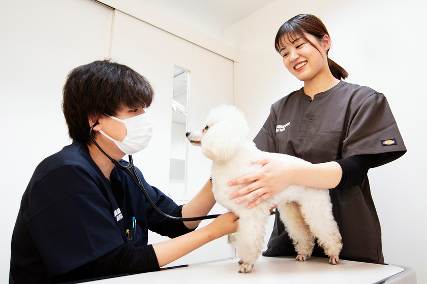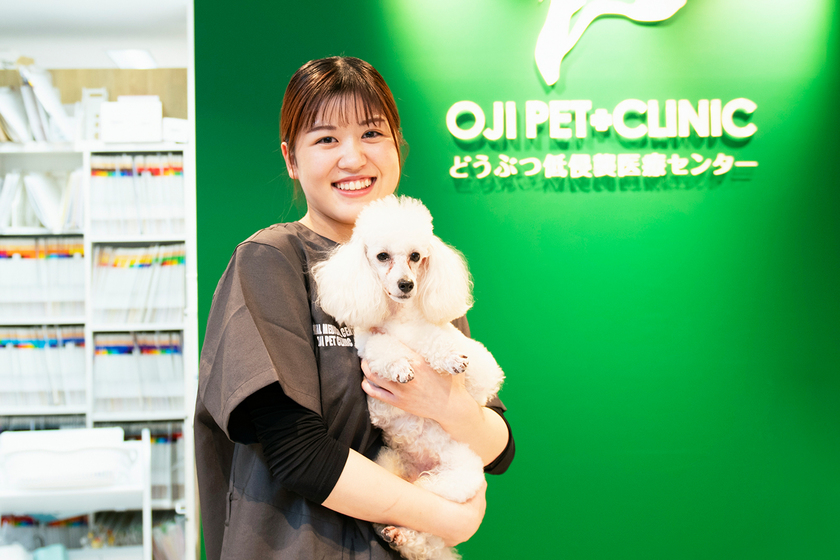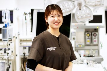 どうぶつ低侵襲医療センター王子ペットクリニック 勤務 /動物看護研究科(現・愛玩動物看護科)/2023年卒/専門学校を卒業後は、1.5次~二次救急を担うクリニックに勤務。愛玩動物看護師として多忙な毎日を送っている。「今の職場は学生時代の研修先でもあり、そのときからここで働きたいと思っていました。最新設備が整っていて、症例も多く、愛玩動物看護師として成長できると思ったからです」。愛玩動物看護師は国家資格となり、今後もニーズが増すと語る。「でも医療技術は常に進化するので、資格を持っていても現場で日々学び続けることが大切。大変な仕事ですが、やりがいはとても大きいです」。