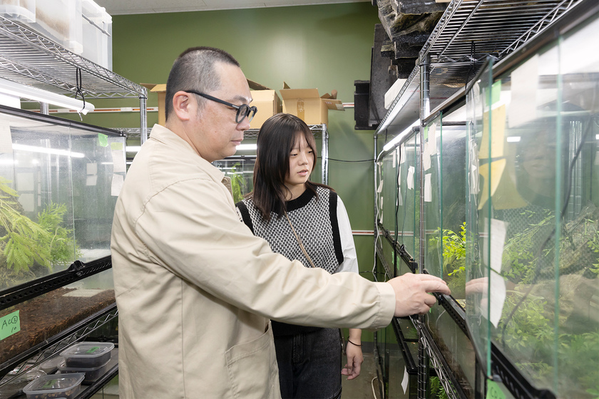 3年次から(一社)野生生物生息域外保全センターの学生研究員として活動する授業です。対象は小型の国内希少種や、密輸で押収されたカメ類など多岐に渡り、専門家から直接論文指導を受け、学会での成果発表を目指す「希少種保全×実践教育」を実現。担当の本田先生は、飼育技術者として希少種の飼育・保全に携わり、2022年に一般社団法人野生生物生息域外保全センターと本田ハビタットデザイン株式会社を設立しています。