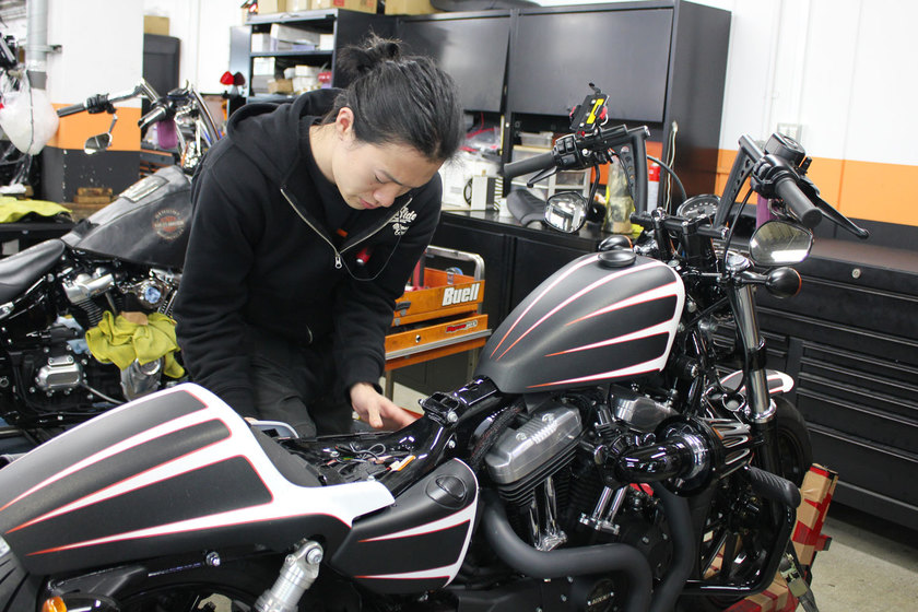 ハーレーダビッドソンで、主に重整備の業務を担当しています。ハーレーのバイクは、国産のバイクとは異なる点がいくつもあり、常に新しい発見をしながら楽しんで仕事をしています。作業後にお客様から直接「ありがとう」と言ってもらえたときには、とてもやりがいを感じます。名前を覚えてもらえたり、旅行に行ってきたからとお土産をいただくこともあり、同じハーレーの愛好者として、お客様との距離が近いことも魅力です。