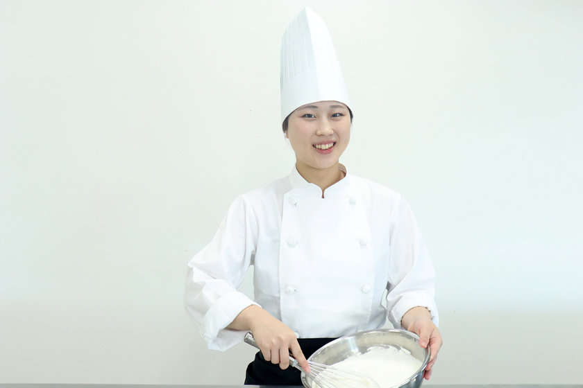 本物の結婚式でウエディングケーキが作れたり、実際にお客様にケーキを販売できたり、短大併修制度があることに惹かれてこの学校への入学を決意。学校のHPやパンフレットを見たことがきっかけとなりました。