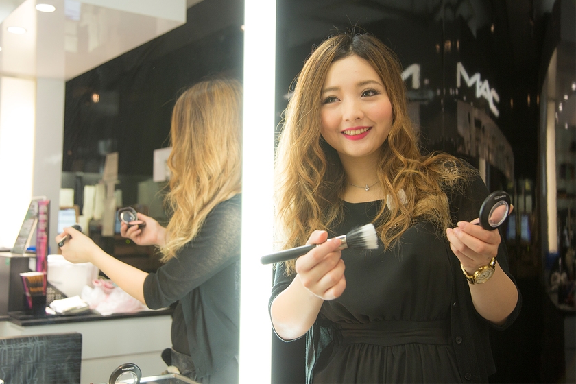 現在は百貨店で、M・A・Cのマックアーティストとして働いています。「すべての人種・年齢・性別の方のために」という理念があり、幅広い年齢層のお客様がいらっしゃいます。この仕事のやりがいは、お客様の笑顔です。普段のメイクに少しプラスすることで「こんなに変わるんだ!」と嬉しそうにしてくださるんです。またメイク中のお客様とのコミュニケーションが特に大事。楽しくお話しすることで、店全体が明るい雰囲気になり、とてもステキな空間が生まれます。ご来店いただくたびに美しくなっていくお客様の姿を見るのが何よりも嬉しいですね。さらに技術や知識を身につけ、お客様にご満足いただけるよう頑張りたいと思います。