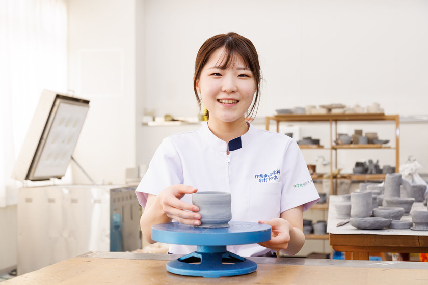 この学校を選んだのは福岡県で唯一3年制の作業療法士養成学校で、ゆとりのあるカリキュラムでじっくり学べるのが魅力的だったためです。ホームページやパンフレットを見たことがきっかけになりました!