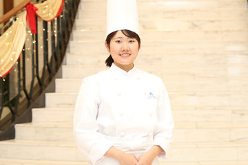 ホテル内のショップで販売するケーキや、ホテルの各部署でお客様からご注文いただいたアニバーサリーケーキ、アフタヌーンティーセット、宴会のコースで出すデザートの製造などを担当しています。お客様の人数が多い時ほど、スタッフ間で密に連携を取りながら効率よく作る技術が求められますが、みんなで一丸となって仕事に取り組んでいる時が一番やりがいを感じます。目標は、“一度食べたら忘れられないケーキ”を作ること。旅行などで偶然当ホテルへお越しいただいた方に、「またこのケーキを食べるためにこのホテルに来たい」と思ってもらえるようなケーキが作れたらとても嬉しいです。この気持ちを常に忘れずに、日々の仕事に励んでいます。