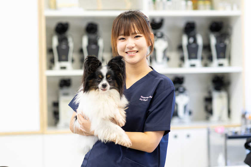 学校=現場という考えに感銘を受けたから。授業の80%が実習で、動物と触れあう中で多くの学びがありますし、獣医や動物看護師として現場経験豊富な先生から、体験に基づいた指導をしてもらえる点に惹かれました。