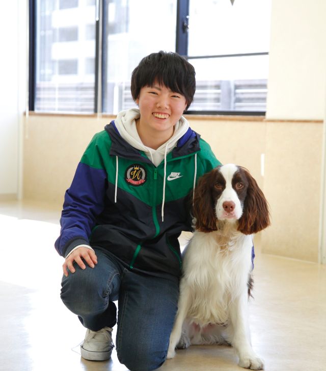 私の将来の夢は、しつけ教室が出来るトレーナーになることです。小さい頃から犬が好きで、犬と人間が楽しく生活できるような社会にしたいと思ったので、トレーナーを目指すようになりました。