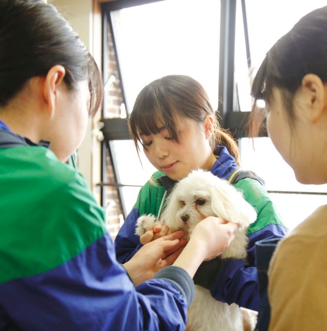 学内犬のトレーニングや美容など管理できるようがんばっています。