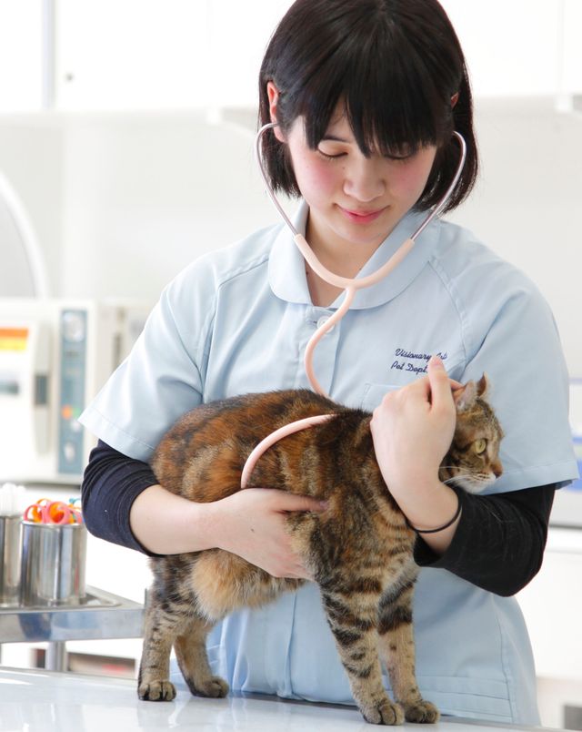 1人ひとりに担当犬がつくことです。担当犬のお世話や散歩など自主的にするようになり、自分のスキルも上達し、わからない所は他の専攻の子たちと協力しながら出来るのでコミュニケーション力もつくと思います。