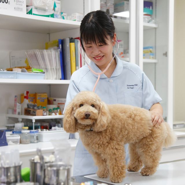 動物看護師です。幼い頃からの夢だった「犬」を飼いはじめたことによって大好きだった動物への思いが増し、動物たちを守ってあげられるような仕事に就きたいと思うようになりました。