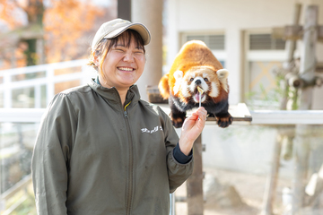今はうさぎやカピバラ、ビントロングなど、ふれあい広場の動物を中心に担当。モルモットだけでも80匹以上いますが、みんな顔を覚えています。仕事の一番の魅力は動物たちがすごくかわいいこと。飼育員でしか見られない姿もたくさんあり、毎日が充実していますね。私のモットーは、そのかわいさや興味深い生態をお客様に伝えること。動物それぞれの魅力に加え、一匹、一頭ごとの魅力を伝えたいので、ふれあいやショーの際にその動物の名前を伝えるのはもちろん、私自身が飼育を通して驚いたり、かわいいと思ったりしたポイントを伝えています。その結果、「〇〇ちゃんに会いに来ました」と言っていただくとやりがいを感じますね。