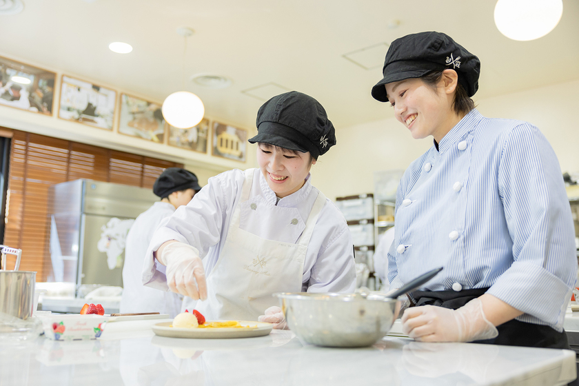 製菓はとても奥が深く、例えば混ぜ方によって生地の状態が変わります。先生は「このレシピならもっとこう混ぜた方がいい」と的確にアドバイスをくれるので、感覚ではなく根拠を知ったうえで技術を身につけられます。私は将来、お客様とのコミュニケーションも大切にできるパティシエになりたいです。先生は身だしなみや挨拶などの気持ちの良い接客サービスや、人として大切なことも教えてくれるんです。