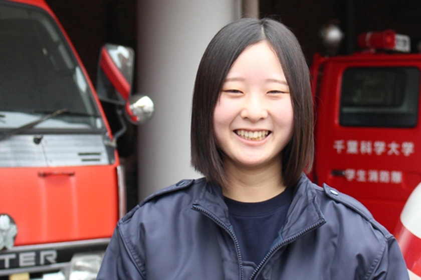 千葉科学大学は、楽しみながら自分の夢に向かって進むことができる大学です。オープンキャンパスに参加したことがきっかけで、救命コースで学びたいと思いました。