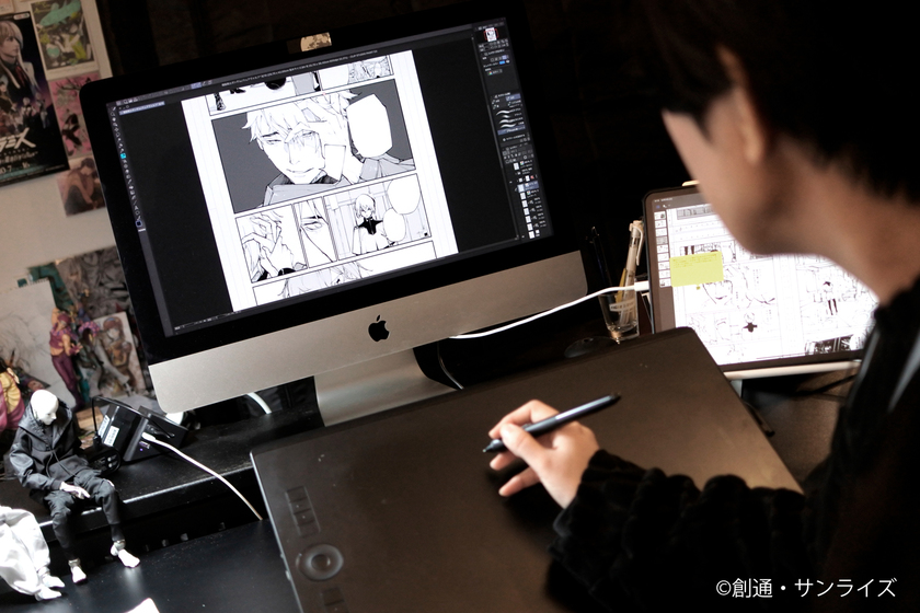 いざデビューすることが出来たものの、初のSF作品、かつロボットなんてまともに描いたことがないのに大丈夫だろうかと内心動揺していましたが、資料などを見て自分なりに落とし込んでいく内に少しずつ楽しくなりました。ファンレターを初めてもらった時は嬉しかったです!それ以来、ハイ・ファンタジーの連載やNFTを題材にした漫画制作、アプリゲームのキャラクターデザイン担当などを経て、再びメカニック作画が重要な漫画に携わることができています。やや飽き性なところがあるだけかもしれませんが、様々な世界観、キャラクター、ジャンルを問わず挑み続けたい気持ちは失わないようにしています。
