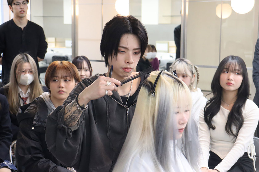 トップゼミでは、人気サロンのトップスタイリストが多数、福岡ベルに実際に来校し、現場で使われている技術や考え方を直接指導してくれます。トレンドのカット技術、スタイリングの発想、モデルへのアプローチなど、プロのデモを間近で見ながら学べるのが魅力です。また、仕事の進め方や現場で大切にしている姿勢など、プロならではの“仕事術”にも触れられます。憧れの現場に近づける実践的な学びがつまっています。