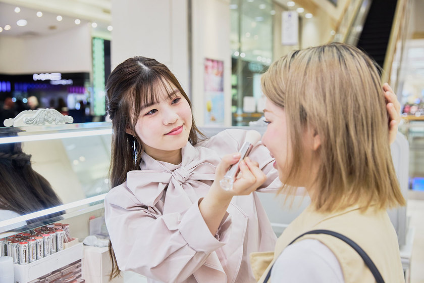 コーセー化粧品販売株式会社(JILL STUART)勤務/トータルビューティ科/2025年卒/中学生の頃から化粧品が好きで、高校の進路選択時に美容の仕事を志す。もともとは“化粧品を作る”方に興味があったが、「かわいい化粧品に囲まれてお客様の憧れになるような存在になりたい」と思ったことが、この道を目指すきっかけに。福岡ベルエポック美容専門学校では、学生時代から自分で選択することが多く、社会人に向けての主体性・行動力を身につけることができたそう。就職活動では、ブランドの世界観と素敵な先輩方の雰囲気に強く惹かれ、コーセー化粧品販売への入社を決めた。現在はビューティースタイリストとして成長を続けている。