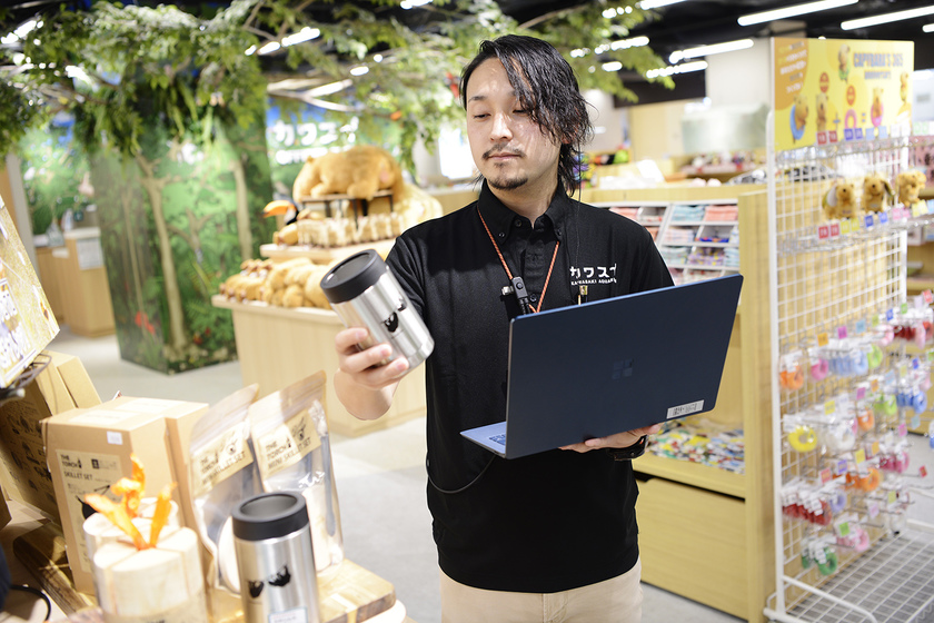 自ら発案・企画したグッズを手に「特に売り上げが気になります」