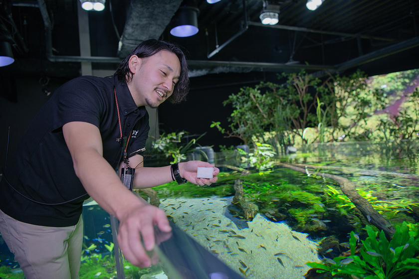 施設立ち上げ時は飼育員として勤務。カワスイは水陸両方の生き物を飼育・展示するため、当時は勉強の毎日でした。サブマネージャーとして運営に携わる現在、その時の経験が大いに活かされていると実感しています。例えばオリジナルグッズの企画・開発。動物の特徴をデザインに正確に反映できるのは飼育経験の賜物であり、また周囲のスタッフから受ける相談には、経験者としてのアドバイスを送ることができるからです。