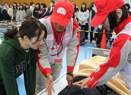 国内外の災害における看護に必要な知識と技術を体系的に学べるカリキュラムを設定しており、実際に救護活動に参加した看護師の講演や災害場面でのトリアージ訓練など、赤十字ならではの授業も多くあります。また、赤十字のグローバルなネットワークを活かした国際交流や4年間を通した英語教育により、多面的な視点や柔軟性、国内外の活動の場で発言や助言ができるコミュニケーション力を育成します。また実習にも重点を置き、赤十字病院だけでなく一般病院や地域医療、訪問看護などの多様な場での実習を経験することで実践力を身につけます。