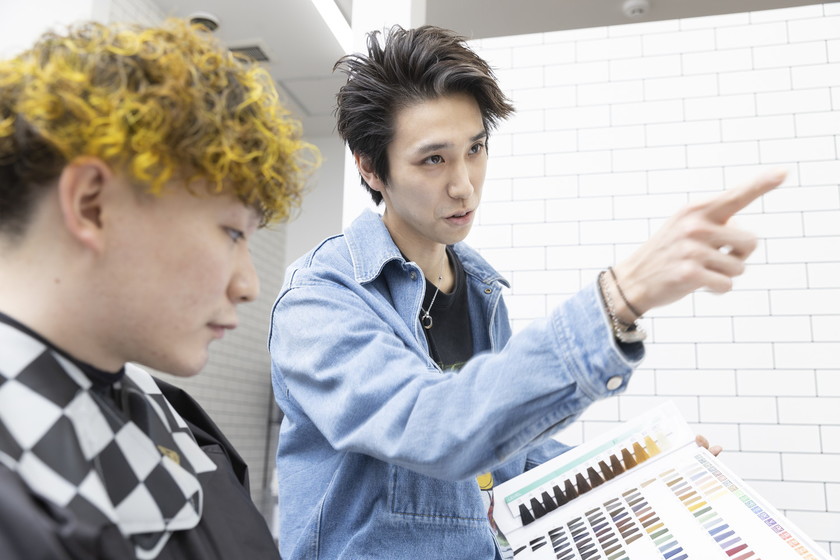 トップスタイリストとして、お客様の満足する技術を提供することはもちろん、この時間を楽しんでいただけるようなコミュニケーションを心がけています。もともと僕はコミュニケーションがそれほど得意ではなかったのですが、学生時代の実習でかなり鍛えられましたね。ベルエポックの学生はコミュ力が高いことが特徴。コミュニケーションに苦手意識がある学生も、サロンワーク実習などのおかげでどんどん克服できますよ。