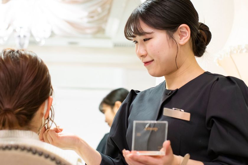 ご新婦様に「ヘアメイクで変わった!すごい!」と喜んでいただけたり、新婦様が入場した時にゲストの方々から「可愛い!」という声が聞こえたりすると凄く嬉しいです。「担当していただいて良かった」と言っていただけた時にはとてもやりがいを感じますね。婚礼当日はもちろん、リハーサルの時にも私のメイクでお客様に笑顔になっていただけると、毎回「これからも頑張りたい」という気持ちになります。