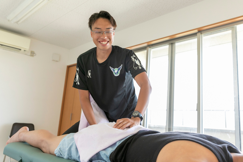 Jリーグクラブ ガイナーレ鳥取(まいれ鍼灸整骨院・整体院)勤務/スポーツ科学科卒/2022年卒/京都共栄学園高等学校出身。プロサッカー選手をめざしていた高校時代にケガでプロ入りを断念。将来はアスレティックトレーナーとして選手のサポートがしたいと思い、京都医健専門学校へ進学。スポーツ科学科で学び、プロサッカーチームでトレーナーの仕事を志望。MAILE株式会社に就職を果たし、Jリーグクラブ『ガイナーレ鳥取』でスポーツトレーナーとして活躍中。ブラジルのトップリーグでトレーナーになる目標のために、日々の技術向上とポルトガル語の勉強にも邁進している。