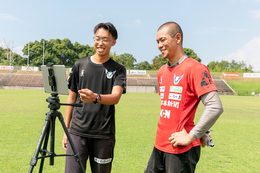 Jリーグクラブ『ガイナーレ鳥取』で、スポーツトレーナーをしています。今は選手のケアや練習のサポートをはじめ、マネージャーの仕事も任されています。「一緒にトレーニングしてくれたから点数が取れた!ありがとう」など、選手からの感謝の言葉が大きなやりがいです。一番の思い出は、初めて試合で勝利した時のこと。ケアやサポートをした選手が活躍して、勝利できた喜びは格別です。得点をした選手に一番先に駆け寄って、一緒に喜び合えるのは何よりもうれしかったです。選手との関わりの中で大切にしていることは、選手との距離感を1番に考えること。一つでも多くの試合に勝てるように、これからも全力でサポートをしていきたいです。