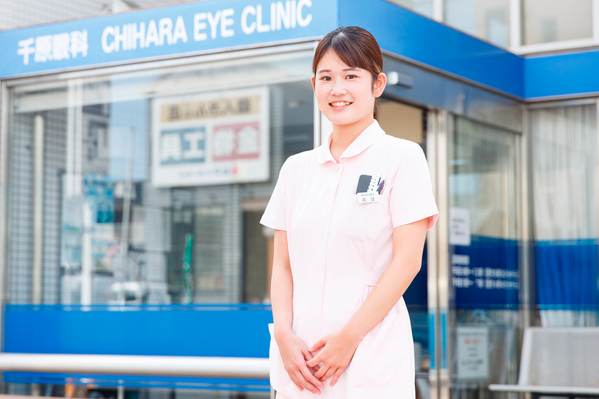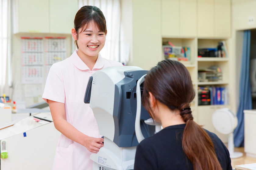 私の働いている病院は、眼科のクリニックとしては規模が大きく、数多くの患者様の治療や手術を行っています。私の担当は、視力検査や眼底写真、メガネ、コンタクト処方、斜視弱視、視野狭窄、視野欠損を調べるなど、検査全般をしています。患者様に寄り添ったコミュニケーションができるととてもやりがいを感じます。先日は「遠くも近くも見にくい」という方に眼鏡処方をした際、様々なレンズを試していただき、一番見やすいものを探して処方。その患者様が次回いらして下さった時に「とても見やすくなったよ、ありがとう」と言われたときは嬉しかったです。