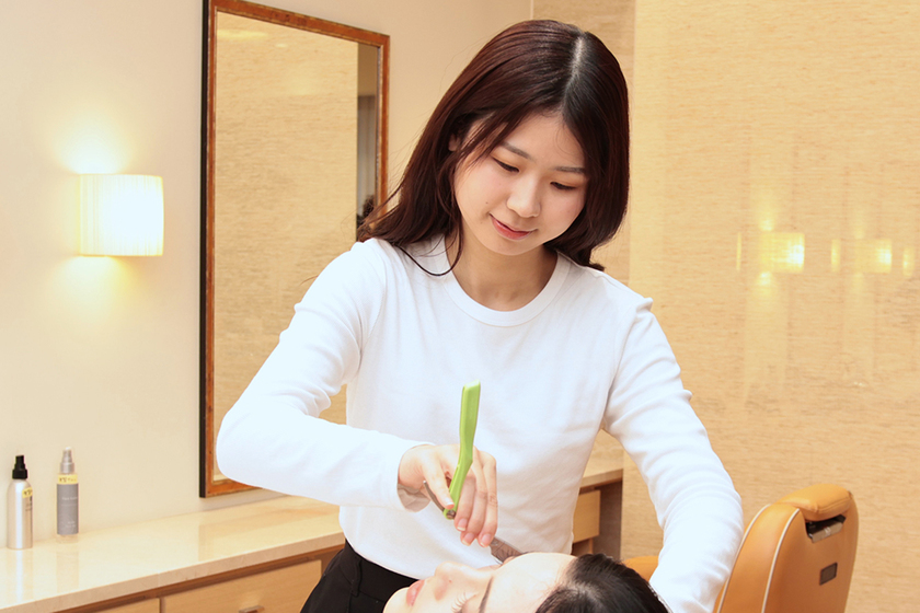 肌を明るくするシェーヴィングの魅力を知ったのは、NHCのオープンキャンパスでした。在学中に理容師とエステの資格をダブル取得し、その人の素肌が持つ本来の美しさを引き出すスペシャリストになりたいと思ったからです。