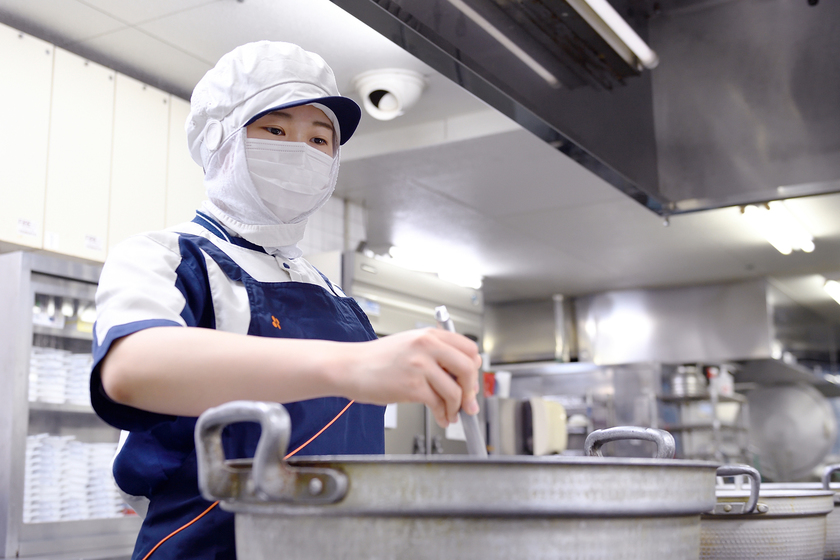 日清医療食品株式会社名古屋支店勤務/配属先:中津川市民病院/栄養士科/2024年卒/病院や福祉施設などでの給食業務を担う会社に勤務しており、現在は病院に配属されている曽我さん。仕事の楽しさについて聞くと、「確実に仕事を覚えられるように先輩方が私のペースに合わせて指導してくださるので働きやすいです。チームワークが良く、協力して200食ほどの食事を作るため、毎日充実感もあります」と話してくれた。将来の目標は管理栄養士として活躍すること。「仕事の幅を広げたいという気持ちもありますが、健康状態と栄養バランスを考えて献立を立て、その食事を食べた人の健康をサポートしたい思いが強いです」と続けてくれた。