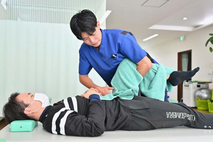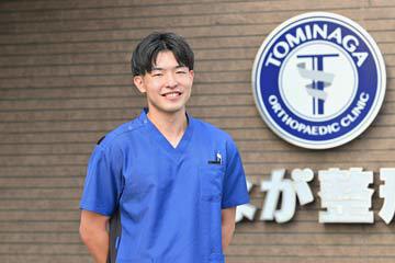 整形外科では主に骨折、捻挫などの固定やリハビリテーションを行っています。また、高校バレーボール部のトレーナーとして外傷の応急処置対応や競技復帰に向けたリハビリテーション、競技力向上のためのトレーニングと指導者としてバレーボール技術指導を行っています。整形外科では、ドクターから外傷の処置方法やリハビリテーションを直接聞けるため、その知識と技術をトレーナー現場に活かしています。この仕事は、選手の競技復帰のためのリハビリテーションや、競技力向上のためのトレーニングで大きな変化が現れた時にやりがいを感じます。特に重症度が高く、時間をかけて回復し復帰できた時は、大変さより嬉しさが勝ちます。