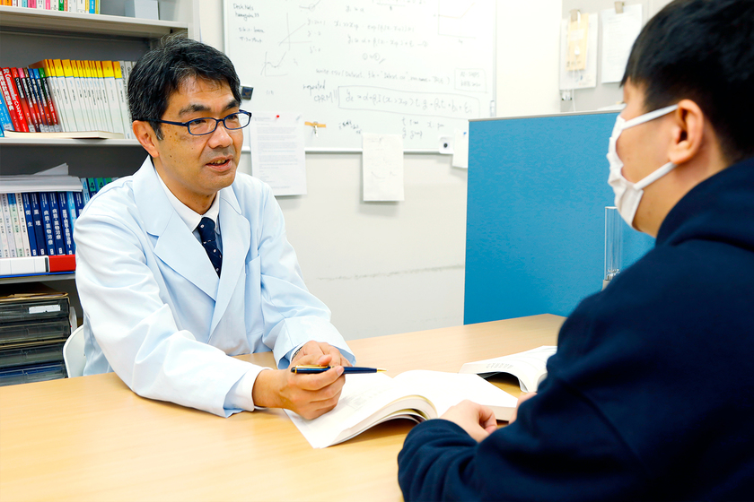 速水先生の授業では、「疫学」および「生物統計学」を学びます。疫学では集団に対する病気の予防を研究。また、生物統計学では、薬の有効性の判断に必要な統計学について学びます。「疫学」は公衆衛生学の一つで、新型コロナの拡大予測や、予防策にも使われる知識です。また「生物統計学」は薬の開発に関わるところ。実際に効き目があるか確かめる試験ではこの知識がベースとなり、「何人ぐらいで、どのぐらいの期間行えば良いか」を計算で割り出します。試験のデザイン設計を行うために必要な統計学のスキルを身につけていきます。