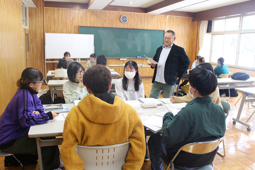 調査した地域情報をグループで整理。先生のアドバイスを受け、実習に必要な視点を養います。