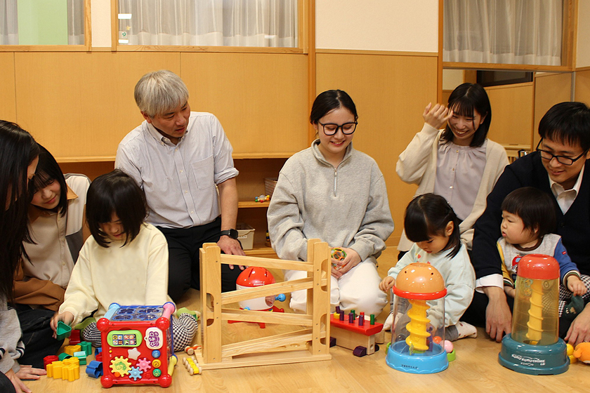 本授業は、子育て支援の現場に入り、親子の実態を体感する演習科目です。学生は現場の保育士から直接指導を受け、乳幼児との関わり方を学びます。最大の特徴は、保護者から子育てに関する本音を聞ける点にあります。他者とコミュニケーションを取り、協働して取り組む姿勢を重視しており、地域と密着した環境で、現場で真に活躍できる高度な専門性を身に付けることができます。
