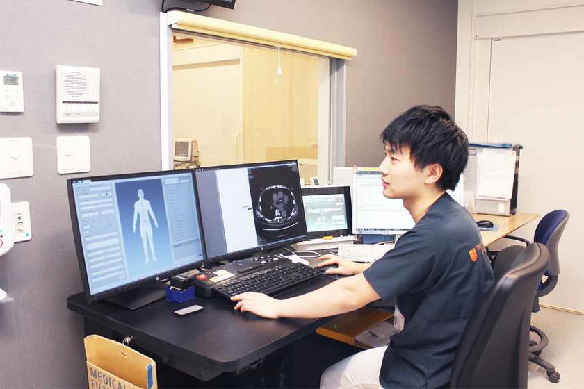 東京医科大学病院に勤務し、放射線部門において検査に携わっています。私たちが携わる検査は、患者様に対する医療行為の指針を導き出すものです。その先駆けに技師として貢献できることが、この仕事の大きな魅力だと感じています。医療の技術は著しく発展しており、そのスピードに負けないように学び続けることが義務でもあり、またそれこそがこの職業のやりがいであるとも感じています。