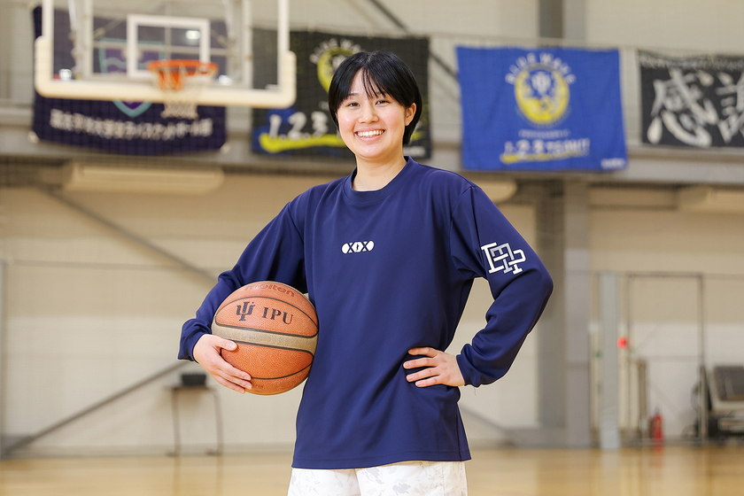 「データサイエンス」の授業を受ける中で、データを扱う楽しさを知りました。将来はスポーツアナリストとして選手を支える専門職に就けるよう、現在はバスケットボール部で私自身も選手活動をしながら、自分や仲間のプレー、対戦チームのデータを分析して、トレーニング方法や試合の作戦にどう生かすのかを研究しています。