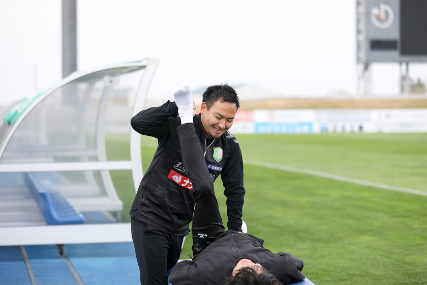 現在、私はプロサッカーチームに所属し、主に選手のコンディショニング管理や怪我の治療、リハビリを中心に担当しています。この仕事の最大の魅力は、練習や試合中に怪我を負った選手が、私たちの治療とリハビリを経て無事にチームに復帰し、その後の試合で活躍してくれることです。選手が点を決めたり、アシストしている姿を見ると、本当に大きなやりがいを感じます。裏方で地味に見える仕事ではありますが、選手と深く関わりながら復帰を支える喜びは、何物にも代えがたいものです。