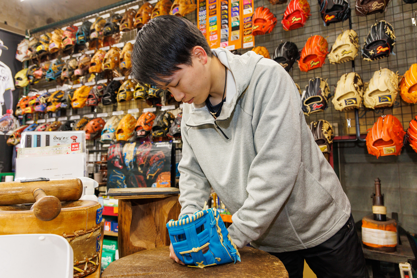 グラブのメンテナンスも一つひとつ丁寧な作業を心がけています