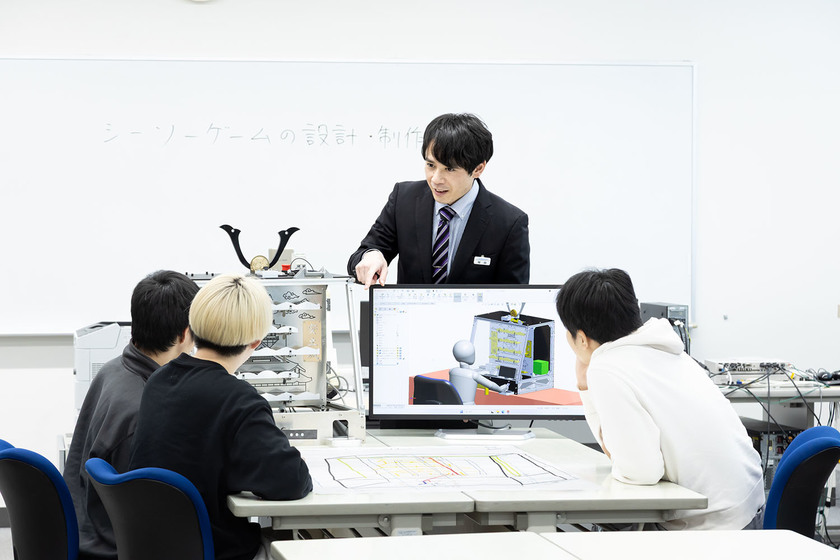 企業の製品開発で行われている「新製品開発プロセス」の手法を用いてものづくりを教えています。「企画→設計→制作→評価」までの流れを経験・実践する中で、ものづくりの面白さを学んでほしいと思っています。授業で学習した「機械設計」「機械加工」「機械制御」の技術・技能を生かして、新しく、今までにないものを一から作り上げていく過程で、自分のスキルを上げていきます。チームで議論を重ねながら1つの制作物を作り上げる過程で、ものづくりの楽しさと自分の成長にやりがいを感じられるテーマになるよう、取り組んでいます。