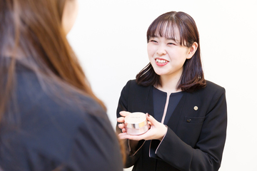 ビューティコンサルタントとして、コーセー化粧品の専門店で化粧品の販売、使用方法のレッスンなどを行っています。仕事をするうえでもっとも大切なのは、お客様のお肌の悩みに親身に寄り添うこと。ただ化粧品を販売するのではなく、本当にお客様に必要なもの、合う商品をご提案することがお客様との信頼関係につながるからです。お肌の悩みを私たちに伝えることはお客様にとって勇気がいること。だからこそいかに本当のお悩みを引き出せる雰囲気づくりができるかが大事なんです。お客様からいただく「あなたに相談してよかった」という一言は私にとっての宝物。たくさんのお客様にそう思っていただけるよう、日々努力していきたいです。