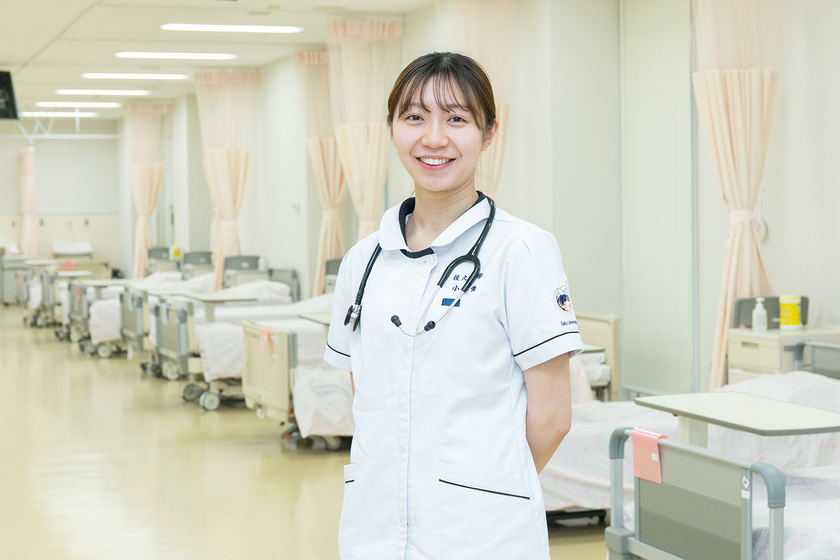 授業の中でもグループワークが多く、コミュニケーション力が身につき、看護師としてのスキルを養うことができました。また、他学年との交流を通して、実習の経験談や就職活動の事前準備、試験のアドバイスなどを先輩から聞くことができる「チューターグループ」での縦のつながりは、とても貴重で魅力的な本学の特長です。