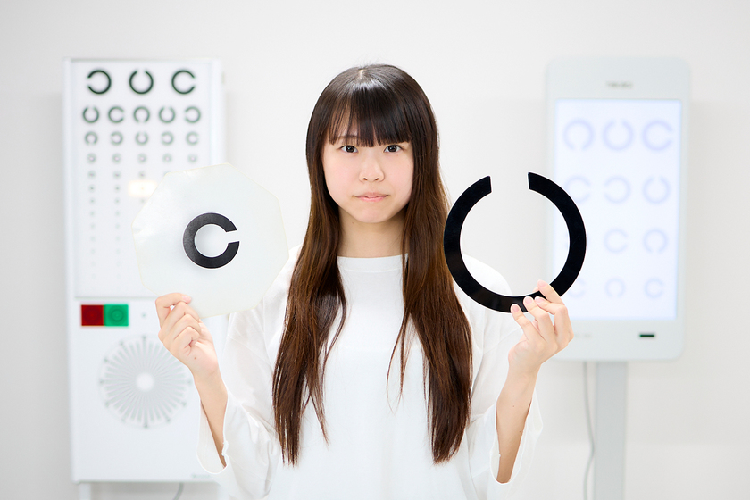 「視能訓練士」とは眼科検査の専門職で、50年以上の歴史を持つ国家資格。授業では、目の病気や臨床に出てから必要な知識を学び、学内実習で視力検査や視野検査などの技術を高めています。視力検査は簡単なように見えてとても難しい検査なので、実際に患者様に行うことができたときには、成長を実感しました!