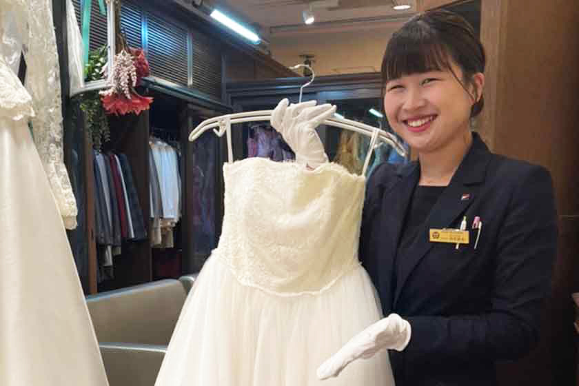 この業界を目指したのは、テレビの特集でブライダル業界に興味を持ったのがきっかけです。もともと高校では服飾学科に通い、ドレスや服について学んでいたので、その経験も生かせる仕事に就きたいと思っていました。実際に自分でウェディングドレスを作ったこともありますよ。今でも、ドレスとティアラやアクセサリーなどの組み合わせを考えるとき、その経験は役に立っていると思います。