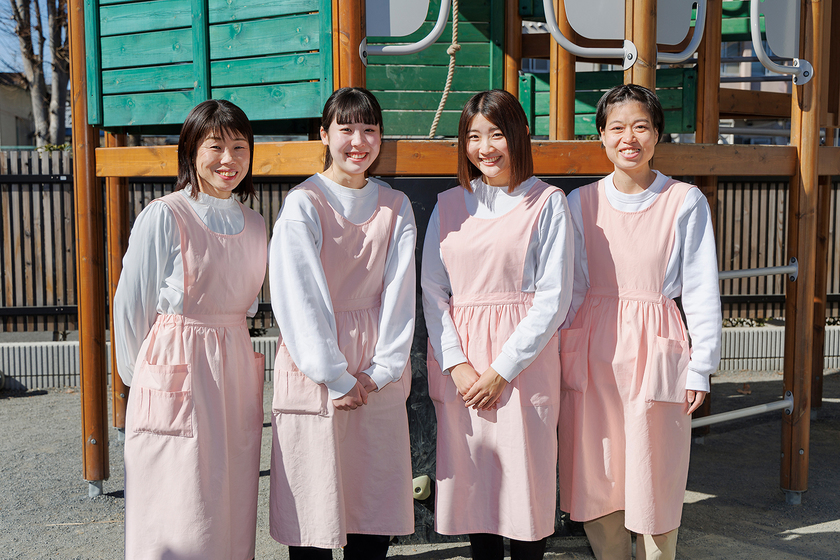 認定こども園ミナパもくせいのもり/保育専門課程 保育学科/2024年3月卒/本校在学中の実習先の園が、現在の職場と同じ法人が運営する「イコロ昭和の森」。「そこで出会ったのが今の園の園長先生で、本当にお世話になりました。その後ミナパもくせいのもりが新設され、園長先生が赴任されることを知って、ぜったりに一緒に働きたいと思ったんです」と語る岩瀬さん。子どもたちと接する際、常に意識しているのは言葉遣い。「言葉を覚える時期の子どもたちは、保育士の言葉をすぐに吸収します。なぜか、悪い言葉ほどすぐに覚えてしまうので、同僚同士の会話にも気をつけ、子どもたちのお手本になれるように気をつけています」。