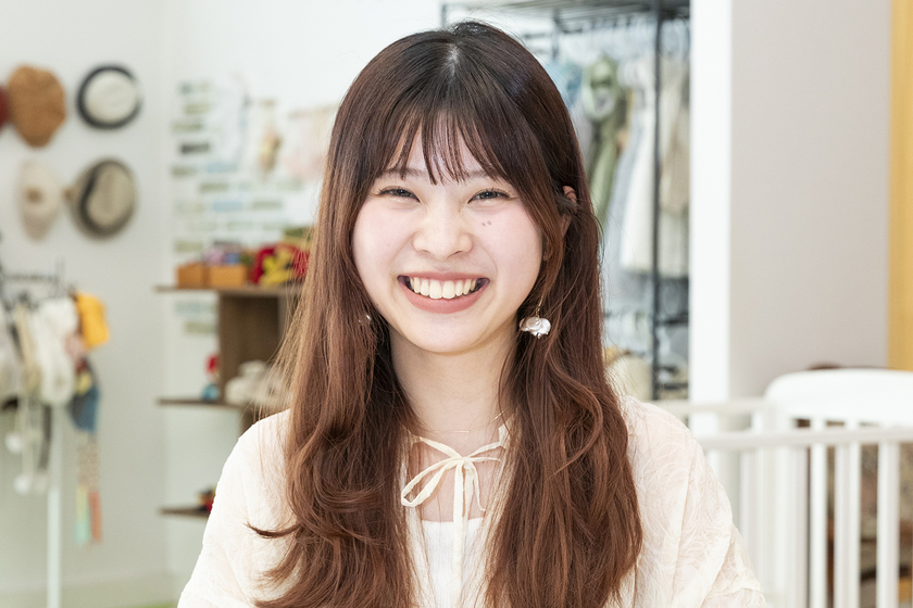 フォトスタジオのヘアメイクアップアーティストとして、婚礼のお嫁さまや成人式のヘアメイク・着付けを担当しています。自分がディレクションしたビジュアルを見て「かわいい!撮りたい!」と指名していただけたときは、私の“かわいい”とお客様の“かわいい”が重なった瞬間だと感じ、大きな喜びを感じます。ご家族そろって仕上がりに感動し、「お姉さんでよかったです」と声をかけていただいた経験も、強く心に残っています。今後は会社のメインビジュアルを任される存在になること、そして将来はブライダルヘアメイクとして独立し、結婚式当日のヘアメイクに携わることを目標にしています。