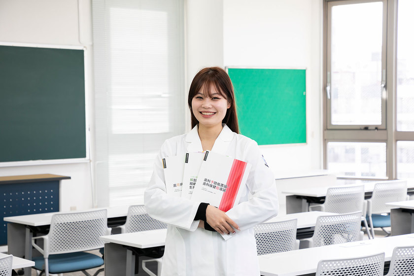 まずは国家試験合格を第一の目標に掲げています。その後は、高校時代に自分が出会った親切な歯科衛生士の方のように、患者さんに寄り添える医療従事者になることが夢です。また、卒業論文にも力を入れ、より専門的な知識を深めていきたいと考えています。