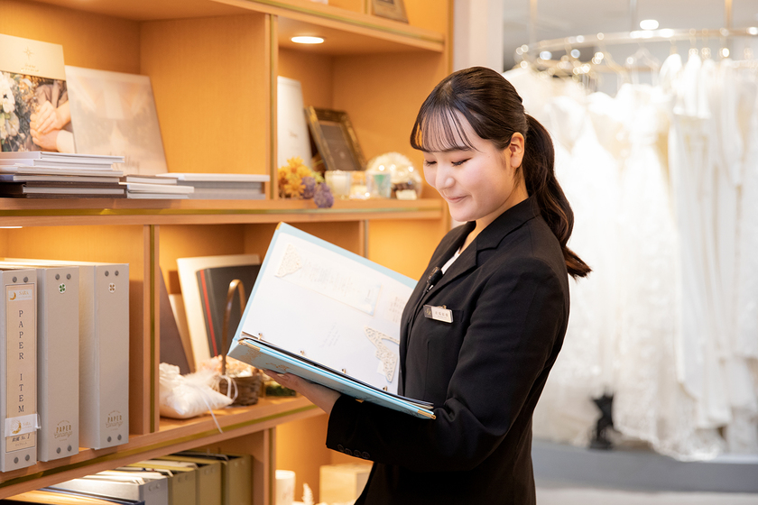 見学に来られたお客様から結婚式への想いをお聞きし、アドバイスをしながら一緒になって結婚式をイメージしていきます。成約が決まれば、お二人の希望をかなえるプランを企画し、当日はキャプテンとして挙式や披露宴をサポート。お見送りまでのすべてをプロデュースするのが私の仕事です。お客様からの「楽しみです!」「一緒に居てくれるので安心します」の言葉が何よりもうれしく、やりがいを感じます。話を伺う中で、正式なプロポーズをされていないという新郎さんに結婚式でのプロポーズをご提案したことがあります。迎えた当日、知らされていなかった新婦さんは涙でいっぱいに。感謝の言葉をかけていただいたことは忘れられません。